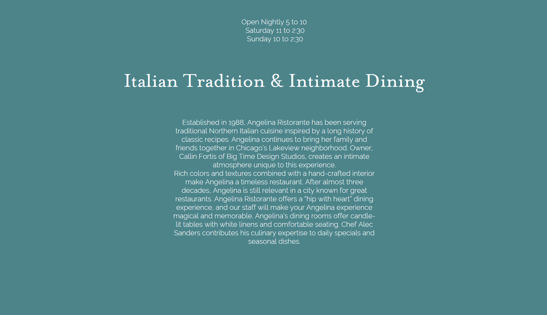 Site designed for a re-brand of a local restaurant in Lakeview Chicago.